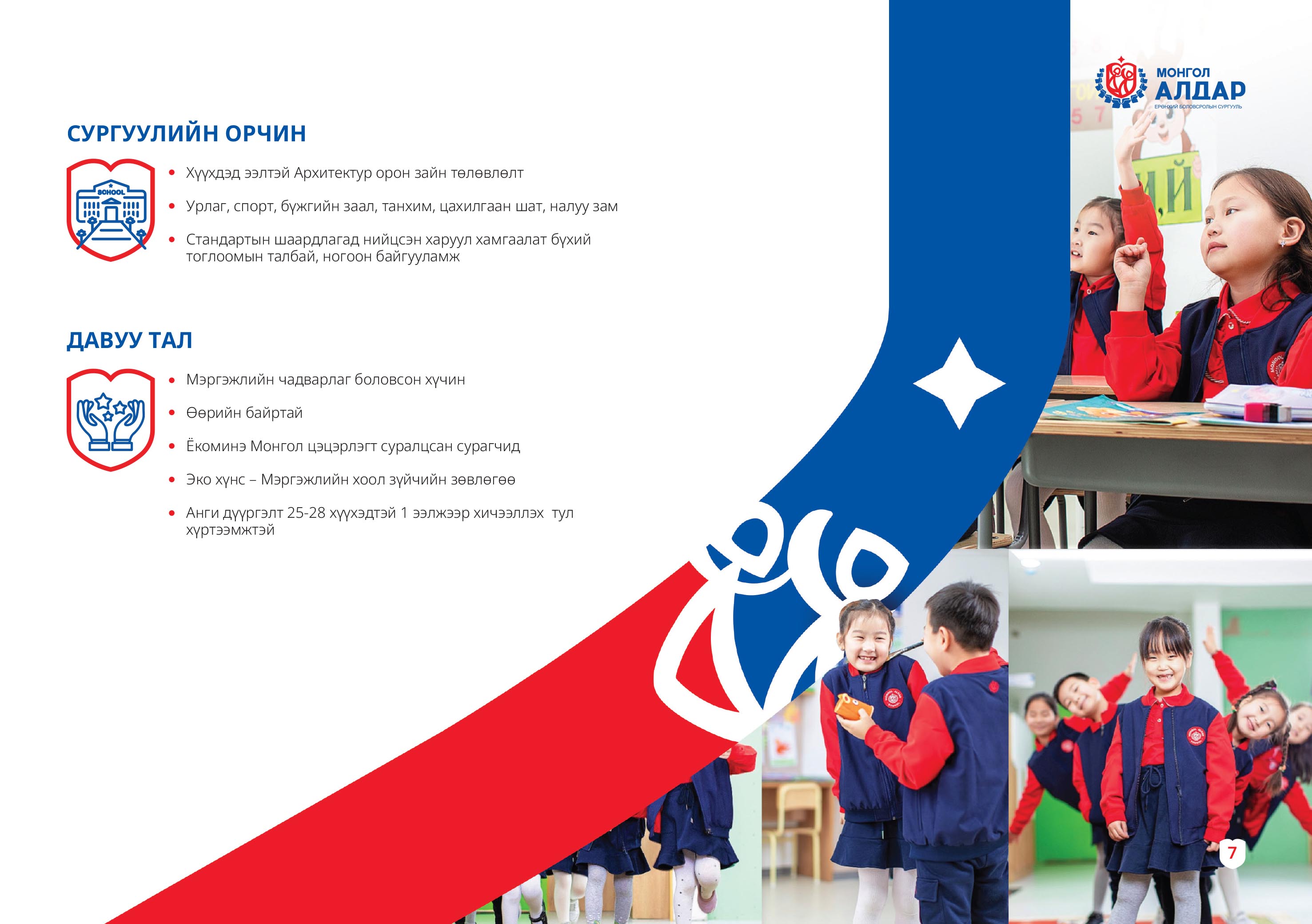 Монголын уламжлалт хүмүүжлийн арга барилыг орчин цагийн боловсролын чиг хандлагатай хослуулсан жишиг сургууль болно.